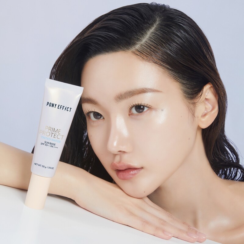 PONY EFFECT水透光妆前防护乳#肤色情境图。 富含67%水精华,添加植萃黏蛋白与乳酸菌萃取等高效保湿成份,搭配锁水晶球科技,以独特保湿锁水晶球,遇水膨胀能包覆肌肤水分,长效锁水保湿,与后续底妆紧密服贴,避免脱妆卡粉,维持整日原生裸肌的乾净透亮。
