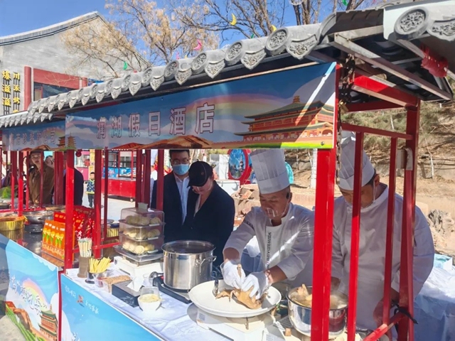 活动现场,人头攒动,热闹非凡。系着靛蓝围裙的厨师长李师傅正握着笊篱打捞锅里的整鸡,琥珀色的汤汁从鸡身滚落时溅起细碎油花,引得围观人群不约而同深吸一口气。随后,厨师们迅速将鸡肉撕成指节大小的肉块,浇上料汁,瞬间,香气四溢的草芽鸡散发出的椒麻香气在雕花窗棂间流窜,市民游客纷纷驻足品尝,每一口都是大自然的馈赠,每一口都充满了张掖韵味。